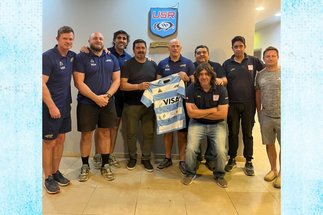 Felipe Contepomi, acompañado por su cuerpo técnico comouesto por Juan Martín Fernández Lobbe, Andrés Bordoy, Juan Covassi, Andrés Charadía, hicieron entrega de una camiseta firmada por los jugadores del seleccionado nacional, mientras que los integrantes de la USR le obsequiaron a los ilustres visitantes la camiseta del seleccionado santiagueño.