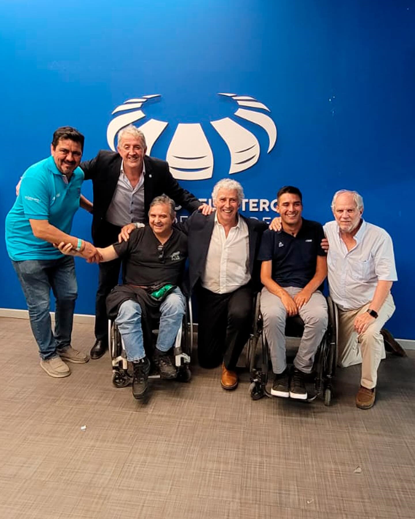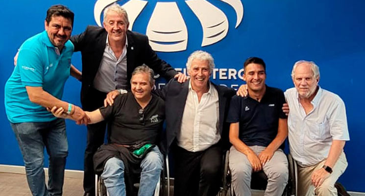Al finalizar el partido Los Pumas se saludan con dos de los integrantes del equipo de la FUAR, Chuchu Basile (Coipu RC de Tucumán) y Orlando “Petaco” Domínguez (Universitario de Salta) quienes posaron también para la foto junto a Gabriel Travaglini Pte. De la UAR y Juan Pablo Bello consejero UAR y FUAR, Marcelo Corvalan Costilla consejero UAR por Tucumán y Mario Chazarreta Pte. De Unión Santiagueña de rugby.