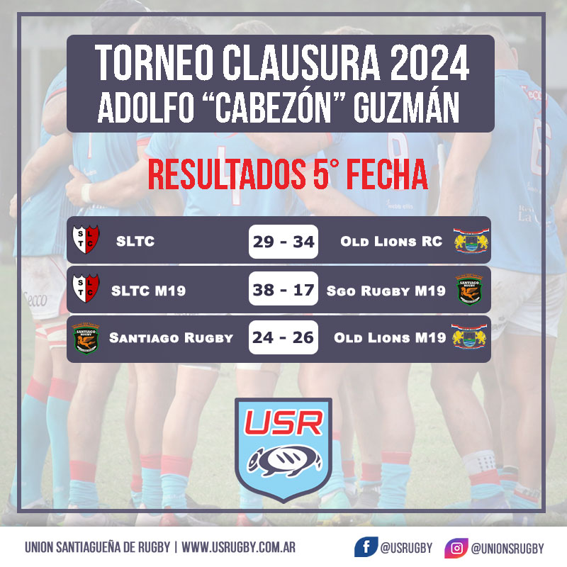 Se jugó íntegramente la quinta y última fecha de la Fase Clasificatoria del Torneo Clausura Adolfo «Cabezón» Guzmán, de la Unión Santiagueña de Rugby, destinado para las categorías Intermedia y Menores de 19 años.