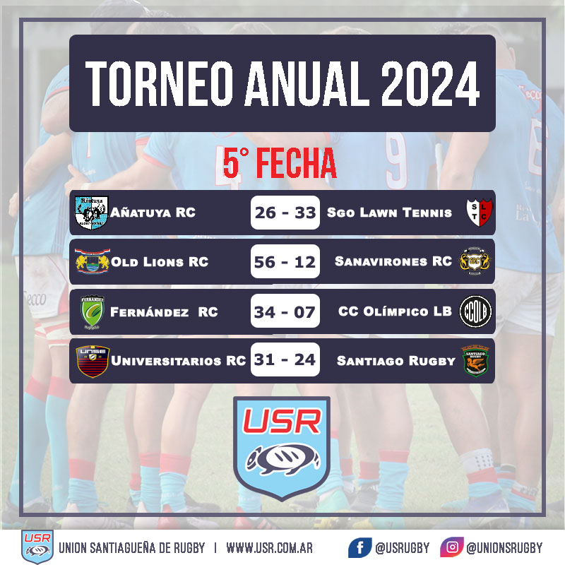 Este fin de semana se jugó íntegramente la quinta fecha del Torneo Anual 2024 que hace disputar la Unión Santiagueña de Rugby.