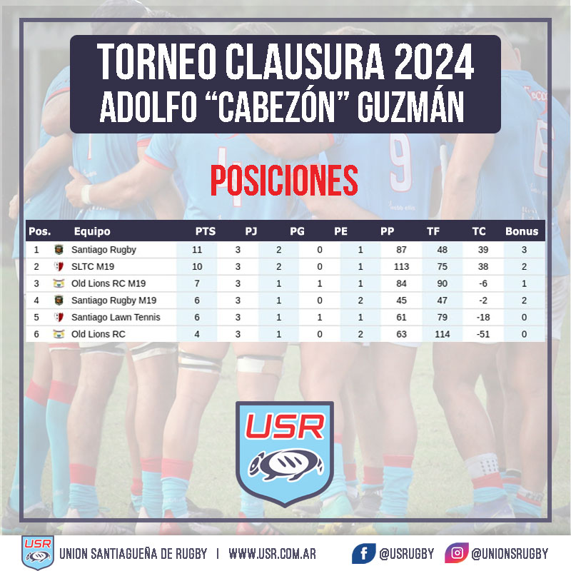 Por su parte, la M19 del Santiago Lawn Tennis Club se quedó con el clásico al ganarle de visitante a Old Lions M19, 47/7 (0-5), y quedó como escolta